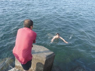 報道還說,中華路派出所員警據(jù)報抵達,發(fā)現(xiàn)了男女學生描述的林姓男子頭也不回的往消波塊走,喊他也不停,林姓男子就跳下海往外礁游去。