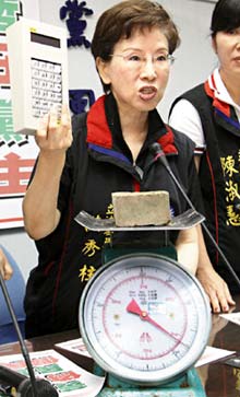 中新網(wǎng)7月10日電 據(jù)臺(tái)灣《聯(lián)合報(bào)》報(bào)道,臺(tái)“立法院”8日爆發(fā)流血沖突,民進(jìn)黨政策會(huì)執(zhí)行長(zhǎng)柯建銘9日表示,“立委”黃偉哲丟定時(shí)器是“一大敗筆”。國(guó)民黨女“立委”昨天開記者會(huì),秤量定時(shí)器,一點(diǎn)一公斤,和從“立法院”花園找來的半塊紅磚一樣重。