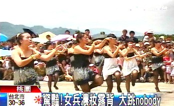 中新網(wǎng)7月10日電 據(jù)臺(tái)灣TVBS報(bào)道,臺(tái)灣陸軍桃園空旗旅營區(qū)10日開放,除了直升機(jī)秀和儀隊(duì)操槍表演之外,營區(qū)20位女軍官特別化起濃妝,穿上高跟鞋和露背裝,大跳苦練一個(gè)月的“NOBODY”。她們笑說,沒想到跳舞比操戰(zhàn)技還要累。