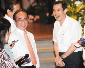 中新網(wǎng)7月15日電 據(jù)臺灣《聯(lián)合報》報道,臺“立法院”臨時會結(jié)束,“立法院長”王金平14日晚宴請馬英九,替他補過60歲生日。席間馬英九與“行政院長”吳敦義贊揚王金平領(lǐng)導(dǎo)“立法院”成功,通過各項重大法案,“在關(guān)鍵時刻發(fā)揮了關(guān)鍵影響力!瘪R、王、吳三人還在臺上高唱“你是我的兄弟”,氣氛熱絡(luò)。