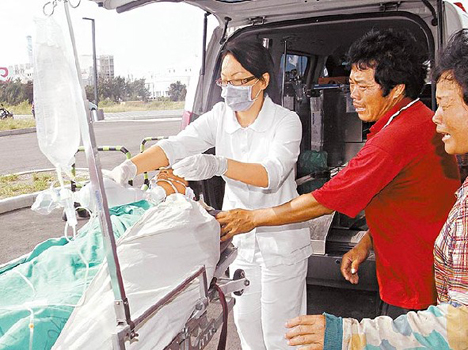 云林縣消防局昨日下午一時(shí)接獲六輕通報(bào),指兩名工人掉落面積十公頃的煤灰處理場(chǎng)的灰塘里,二十名警義消搜救一個(gè)多小時(shí),救起工人張景富(二十三歲),但送往長(zhǎng)庚醫(yī)院麥寮分院時(shí)已無(wú)呼吸心跳,另一名工人張煥奇(三十歲)至昨深夜仍未尋獲。