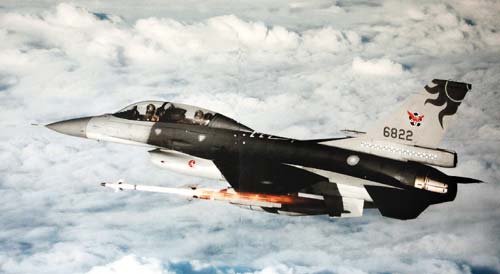中新網(wǎng)8月5日電 據(jù)臺灣《聯(lián)合報(bào)》報(bào)道,臺灣空軍花蓮基地兩架F16戰(zhàn)機(jī)日前演習(xí)射擊魚叉飛彈。