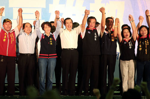 報(bào)道說(shuō),馬英九率領(lǐng)的中常會(huì)并為國(guó)民黨提名的市長(zhǎng)及市議員參選人加油打氣,營(yíng)造勝選氣勢(shì)。