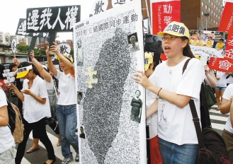 中新網(wǎng)8月12日電 “日本政府,道歉賠償!”日本首相菅直人前天向韓國道歉“曾經(jīng)殖民支配”,臺灣婦女救援基金會、臺灣戰(zhàn)俘營紀(jì)念協(xié)會等民間團(tuán)體,11日赴“日本交流協(xié)會”前抗議并要求完成“歷史記憶拼圖”,不過交流協(xié)會代表僅接下抗議信,不愿完成拼圖。