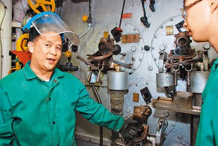 中新網(wǎng)8月16日電 據(jù)臺(tái)灣《中國(guó)時(shí)報(bào)》報(bào)道,臺(tái)海軍老舊的“濟(jì)陽(yáng)級(jí)(諾克斯)”艦上,有官兵每天仍必須在軍艦最底層攝氏近50度的鍋爐間工作8小時(shí),堪稱是軍中最“水深火熱”的苦缺;然有而資深士官卻一干15年,并笑稱回家都不用吹冷氣,但可能因?yàn)樘珶,大部分鍋爐官兵都生女兒。