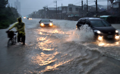 臺(tái)灣“氣象局”指出,“凡那比”中心點(diǎn)離開臺(tái)灣本島后,高雄縣市和屏東地區(qū)降雨以每小時(shí)超過(guò)100毫米速度增加,“氣象局”19日晚7時(shí)將高雄山區(qū)與屏東山區(qū)總降雨量再上修至1200毫米及1400毫米。