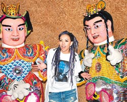 中新網(wǎng)9月28日電 據(jù)臺灣《中國時報》報道,臺灣藝人張惠妹(阿妹)27日參觀上海世博臺灣館,她俏皮地用圍巾,即興扮成中東女孩造型,“我把整個頭包起來,只露出眼睛。我就是這樣逛世博,所有人都不敢靠近我!彼谖⒉┥蟼鳌吧程嘏⒀b”卻被林志穎開玩笑表示“您就是傳說中的‘犀利妹’?”