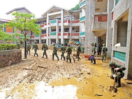 臺(tái)風(fēng)外圍環(huán)流和東北季風(fēng)共同重創(chuàng)宜蘭,昨日是災(zāi)后第四天,蘇澳鎮(zhèn)仍在重建復(fù)原階段,但清理工作猶如剝洋蔥般,清除一層屋外土石,又得清除屋內(nèi)殘骸。宜蘭縣長(zhǎng)林聰賢估計(jì),主要干道與生活秩序,25日可局部恢復(fù),但完全恢復(fù)從24日起算,概估需五天時(shí)間才行。