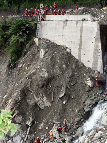 25日下午4時,蘇花公路又突然下起一場滂沱大雨,不論是在112公里、114.5公里還是116公里,搜救人員、工程人員和記者急著找安全的地方遮蔽大雨,遠(yuǎn)離可能的土石坍塌。惡劣的天氣中斷道路搶通及搜索行動,不僅延宕道路修復(fù),也讓等待消息的親人又要再一夜輾轉(zhuǎn)難眠。