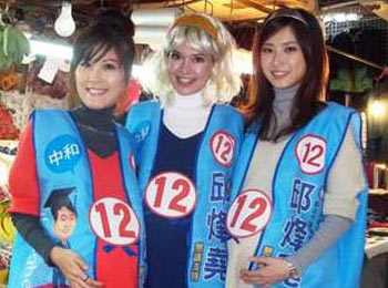 中新網(wǎng)11月25日電 據(jù)“中央社”報道,未婚的“政大(臺灣政治大學(xué))4姬”中的三人24日扮孕婦到中和為人助選拜票。三人說,“扮孕婦象征‘好運(yùn)到’”。