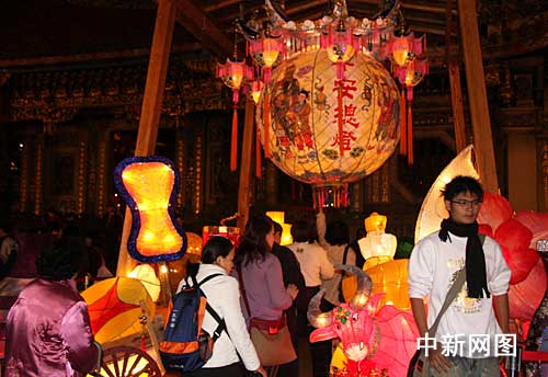圖:臺北民眾摸平安燈上香祈求新年平安——中新網(wǎng)
