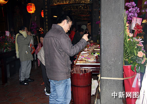 到寺廟去虔誠拜拜,祈求來年平安是成千上萬臺胞春節(jié)必做的功課。 中新網(wǎng)記者 陳立宇 攝