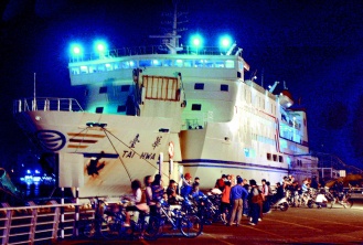 臺華輪船齡十八年,排水八千噸,可搭載一千一百余人,最大航速二十二節(jié),高雄到馬公航程四個多小時(shí),從馬公到廈門要六點(diǎn)五小時(shí)至七小時(shí)。