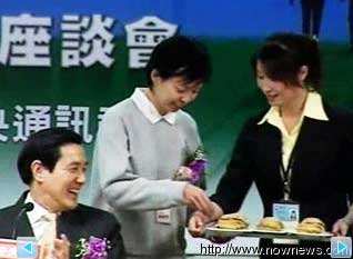 上次吃紅豆餅是被夫人周美青瞪,還好現(xiàn)場有人驚喜求婚,打斷了馬英九想吃的欲望,而喜歡即興當(dāng)媒人婆的馬英九,妙語如珠炒熱現(xiàn)場氣氛。