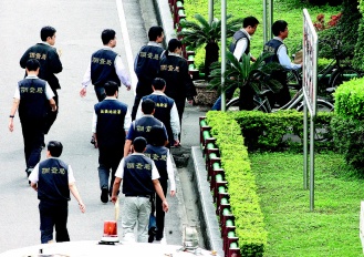據(jù)悉,檢調(diào)監(jiān)控本案將近一年,原本在去年底就打算搜索,但因?yàn)殛愃饬b押入所而打亂行動(dòng),今天上午陳水扁到北院開庭,陳水扁維安車隊(duì)前腳剛走,三臺(tái)大型警備車就尾隨進(jìn)入北所,130多名檢警調(diào)人員跳下去,沖入看守所后即按事前分配,進(jìn)入各房舍徹底搜索,陣仗前所未見。