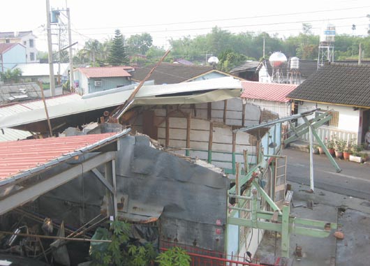大林里長(zhǎng)吳進(jìn)丁說,老一輩人都說龍卷風(fēng)比臺(tái)風(fēng)可怕,昨天才讓他見識(shí)到龍卷風(fēng)的厲害。他認(rèn)為,吳郭幼的屋頂應(yīng)該是被龍卷風(fēng)往上卷起至少三米,再整個(gè)倒蓋下來。