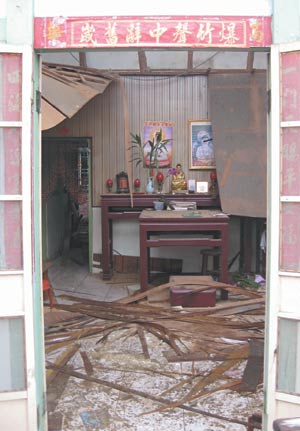 篤信佛教的她說,趕緊回屋,發(fā)現(xiàn)三十坪大的屋內(nèi)滿目瘡痍,電視、冰箱全倒,杯碗散落一地,亂成一團(tuán);“還好客廳供奉的佛祖神像沒有受損”,仍安穩(wěn)坐在供桌上!澳芴舆^一劫,真是神明有保佑!”