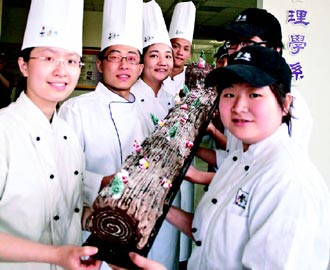 中新網(wǎng)4月28日電 據(jù)臺(tái)灣《聯(lián)合報(bào)》報(bào)道,臺(tái)灣私立明道大學(xué)餐旅管理學(xué)系第五屆畢業(yè)生齊心合力制作長(zhǎng)達(dá)159厘米的“神木蛋糕”,昨天在畢業(yè)展中交給第六屆的學(xué)弟妹,畢業(yè)展總召集人楊永祥說(shuō):“神木蛋糕象征學(xué)習(xí)與經(jīng)驗(yàn)傳承,是明道餐管系的傳統(tǒng)!