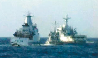 林乙民說(shuō),臺(tái)、日船艦對(duì)峙時(shí)互相鳴笛,日方還頻頻放出震撼彈,簡(jiǎn)直就象是戰(zhàn)爭(zhēng),日方強(qiáng)勢(shì)“鴨霸作風(fēng)”,根本就是把臺(tái)灣船艦當(dāng)成演習(xí)目標(biāo)。