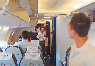 不料旅客這一等就等了將近二十四個(gè)小時(shí),直到昨天上午八時(shí)上航改以加班機(jī)FM80Y重新起飛,一百五十名旅客在起飛前情緒就已沸騰。飛機(jī)在上午十時(shí)三十分降落松山機(jī)場(chǎng)后,七十名旅客陸續(xù)下機(jī),仍有八十名旅客不肯下機(jī),要求民航主管部門(mén)及上航代表上機(jī)“給一個(gè)說(shuō)法”。臺(tái)灣民航主管部門(mén)人員及航警緊急登機(jī)協(xié)調(diào),旅客在十一時(shí)十二分自動(dòng)下機(jī)。