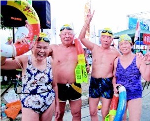 七十七歲的向延發(fā)也和太太同行,一起完成泳渡美夢,他說這次來臺旅游重點(diǎn)就是日月潭泳渡,接下來要和廣州冬泳會的“玩水一族”老友,一起游臺中、花蓮、臺南。