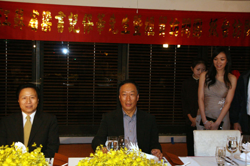 梁保華所帶領(lǐng)的大陸江蘇省經(jīng)貿(mào)考察團,晚上6時30分在涵碧樓湖光軒餐廳接受郭臺銘的晚宴,陪同的臺灣政商人士包括國民黨副主席林豐正、全臺工業(yè)總會理事長陳武雄等人,計有兩岸代表約50人參加。