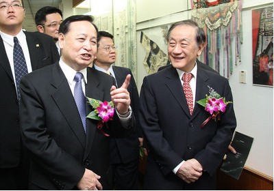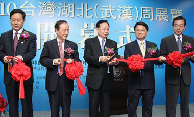 湖北省省委書記羅清泉、新黨主席郁慕明、前;鶗倍麻L焦仁和、大陸當代畫家周韶華和臺灣藝術家李奇茂等,21日上午皆出席“2010臺灣湖北 (武漢)周─荊楚文化聯(lián)展”開幕式典禮。