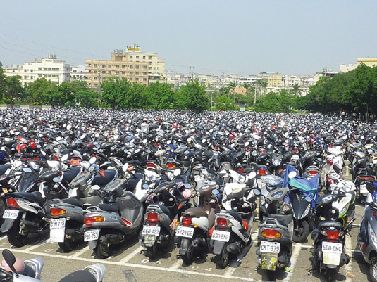 中新網(wǎng)5月18日電 臺(tái)灣靜宜大學(xué)有個(gè)號(hào)稱“全臺(tái)之最”的摩托車停車場(chǎng),不僅常讓健忘學(xué)生在“車海”中找不到車,盛名透過(guò)網(wǎng)絡(luò)在大陸傳開(kāi),被認(rèn)為是“世界奇景”,許多來(lái)臺(tái)參訪的大陸學(xué)者指名拍照留念,作為訪臺(tái)“見(jiàn)證”。