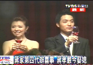 事實(shí)上,小兩口已經(jīng)在美國(guó)登記結(jié)婚,不過(guò)臺(tái)灣禮俗不可免,蔣孝嚴(yán)夫婦一大早就前往宜蘭迎娶新娘,兒子才是主角,當(dāng)老爸的不敢太高調(diào)。而邀請(qǐng)誰(shuí)來(lái)參加婚宴呢?蔣孝嚴(yán)傷透腦筋。