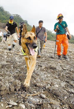 只是,豬尸與人尸氣味相仿,搜救犬訓(xùn)練方式就是要它們“找到死豬肉”。但新開部落土石流崩落,恐怕許多豬只也被埋入,是否會造成搜救犬誤判,袁明桂認(rèn)為有可能。但搜救犬的投入絕對會讓查找工作更順利。