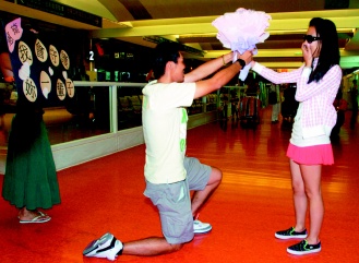 中新網(wǎng)8月26日電 據(jù)臺(tái)灣《聯(lián)合報(bào)》報(bào)道,七夕情人節(jié)到來前夕,桃園機(jī)場(chǎng)入境大廳出現(xiàn)浪漫求婚情節(jié)。