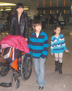 中新網(wǎng)1月21日電 據(jù)臺灣《聯(lián)合報》報道,國民黨秘書長金溥聰?shù)钠拮又芑坻门c一雙兒女結(jié)束5個月的華盛頓之旅,20日清晨返抵臺灣。由于周慧婷之前才摔傷,一路上還得照料2個也都受傷的孩子,一到桃園機場,周慧婷帶著孩子上車走了,讓趕來接機的金溥聰撲了空。這對糊涂夫妻還得靠記者幫忙傳話,連周慧婷也笑說:“我不知道他要來接,他可能是想給我驚喜!