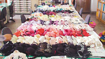 中新網(wǎng)5月6日電 據(jù)臺灣《聯(lián)合報》報道,臺中縣清水鎮(zhèn)58歲周姓男子有偷竊收藏女性內(nèi)衣癖好,從初中偷到現(xiàn)在,連結(jié)婚30年的太太也不知情;前天首度失手被逮,警員搜出600多件內(nèi)衣褲,連發(fā)黃又有霉味的阿嬤內(nèi)衣都偷,令警方傻眼。