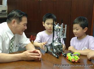 許明財下午約見“小紅帽隊”及“傀儡魔術(shù)隊”成員,民富小學(xué)林碧霞校長及多位家長也陪同在旁。小朋友們帶著獎牌、獎狀,開心的與許市長見面,甚至還帶著最得意的機器人作品“秀”給許市長瞧瞧。