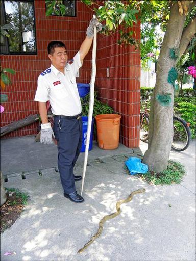 中新網(wǎng)5月19日電 據(jù)臺(tái)灣媒體報(bào)道,大蛇吃小蛇,消防人員前晚捕捉2米長(zhǎng)的臭青母時(shí),它竟吐出肚中1米長(zhǎng)的小臭青母,“抓一條送一條”十分罕見。