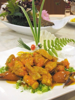 呂文芳首推10道經(jīng)典菜,其中幾近失傳的豆乳蟳,是早期文華莊出名的招牌菜,要讓苦瓜的苦味不滲入蟹肉里,卻又得讓豆腐乳的甘醇融于苦瓜與蟹肉中,還有手工菜菊花燕窩、旦黃大蝦、桂花魚翅等。過(guò)去北投各酒家的傳奇菜蓬萊排骨酥,是當(dāng)?shù)啬ν熊噷K椭粮骶萍业闹该戮撇耍缃褚苍俣戎噩F(xiàn)。