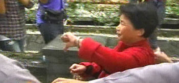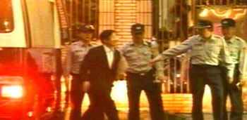 在法警的護送下,陳水扁身著黑西裝,手拿一份牛皮紙袋的資料,從臺北看守所出發(fā)乘警備車前往法院。下午5時40分,車隊抵達法院,陳水扁臉上帶著一抹淺淺的微笑,未戴手銬。