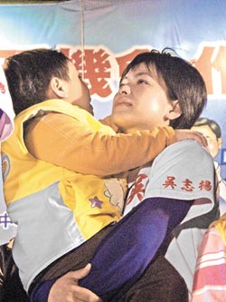 她有個(gè)響叮當(dāng)?shù)墓珔遣,丈夫吳志揚(yáng)又總是綠營(yíng)攻訐的箭靶,她也忍受了許多委屈。如今,兒媳、妻子與輔選角色間的轉(zhuǎn)換,她已應(yīng)付自如,五日晚間希望與夫婿擁抱,再嘗勝利果實(shí)。