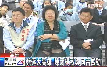 中新網(wǎng)12月14日電 據(jù)臺灣TVBS報道,樞機主教單國璽的新書發(fā)表會14日在高雄舉行,有意參選大高雄市長的現(xiàn)任縣市長陳菊跟楊秋興,一前一后到了會場,卻沒有太多互動。對于明年誰參選,楊秋興傾向協(xié)調(diào),陳菊也很有風(fēng)度地說,兩人情誼三十年,她輸了就會幫楊秋興輔選。