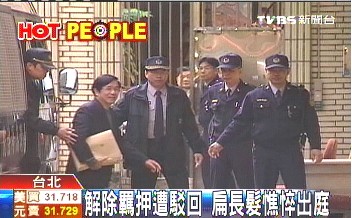 陳水扁原本利落的短發(fā)現(xiàn)在長(zhǎng)到必須勾到耳后,臉色蠟黃憔悴,走進(jìn)法庭時(shí)不再抬頭挺胸,而是身形單薄,步履蹣跚。