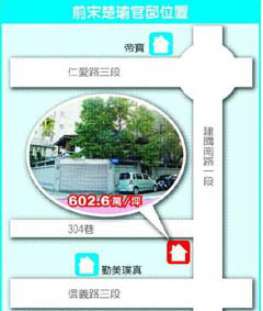 房仲業(yè)者說,這間房地每坪底價222萬余元,多家業(yè)者都出價搶標,最后被邱寶慧以每坪602萬元、總價7.3億元標走,創(chuàng)島內(nèi)住宅區(qū)土地標售史上次高紀錄。