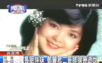 中新網(wǎng)2月22日電 據(jù)臺灣TVBS報道,鄧麗君過世多年,但始終有不少粉絲,就連今年高雄藝術(shù)燈會也特地成立鄧麗君紀(jì)念館,吸引不少游客。不過就在春節(jié)期間,鄧麗君的二哥鄧長順因為罹患肺腺癌,不幸過世,享壽63歲。