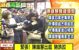 中新網(wǎng)2月4日電 據(jù)臺灣TVBS報(bào)道,臺北地方法院持續(xù)審理扁家弊案,今天傳喚重要證人陳鎮(zhèn)慧,陳鎮(zhèn)慧自從去年11月20日轉(zhuǎn)為污點(diǎn)證人離開臺北看守所后,到現(xiàn)在已經(jīng)有77天沒有公開現(xiàn)身,傳出這一段時間,陳鎮(zhèn)慧都是易容出門和律師討論案情,所以今天出庭備受矚目。