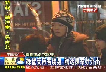 綠營(yíng)支持者夾著陳幸妤上了出租車,下車后陳幸妤先到快餐店用餐,接著到紐約大學(xué)牙醫(yī)學(xué)系,晚間則是綠營(yíng)支持者安排陳幸妤到百老匯看劇。
