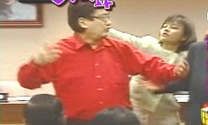 中新網(wǎng)4月22日電 臺灣“立法院”今天再度出現(xiàn)火爆場面,國民黨“立委”李慶華講話時突遭民進(jìn)黨“立委”邱議瑩偷襲,被甩了一個耳光。