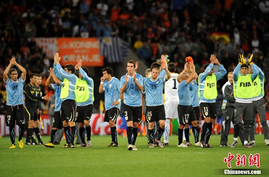 “周六(與加納隊)的比賽隊我們很重要,”塔巴雷斯說,“當我們回首的時候,我們發(fā)現(xiàn),我們進入了四強半決賽,另外三隊都來自歐洲。”隨著烏拉圭的出局,世界杯也成了歐洲球隊的內戰(zhàn),荷蘭將于明天和德國與西班牙半決賽的勝者爭奪冠軍。