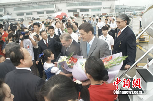 中新網(wǎng)南京8月27日電 (記者 孫翔鳴 張璐)今天下午2時(shí)10分,國際奧委會(huì)主席雅克·羅格乘坐專機(jī)由新加坡飛抵南京開始為期三天的考察訪問。