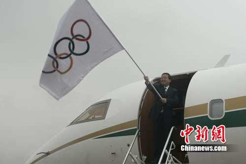 陪同并護(hù)送青奧會(huì)會(huì)旗的中國香港奧委會(huì)主席霍震霆、南京市市長季建業(yè)等11名官員、貴賓同機(jī)入境。