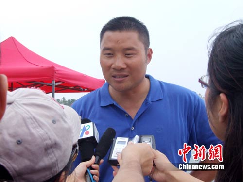 墨鏡、藍(lán)T、褐色短褲,還別了對講機(jī),等他拿出對講機(jī)開始說話的時(shí)候,酷的就像007!斑@次我是以浙江省水上運(yùn)動(dòng)管理中心工作人員的身份率隊(duì)征戰(zhàn)水運(yùn)會的!泵详P(guān)良笑著說。