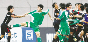到了下半場(chǎng),雙方的動(dòng)作越來越粗野。第88分鐘,場(chǎng)上比分為1比1時(shí),北京國(guó)安隊(duì)的5名球員突然包圍幼獅隊(duì)的一名球員。接著,兩隊(duì)的替補(bǔ)球員紛紛沖進(jìn)球場(chǎng),彼此拳打腳踢打成一團(tuán)。